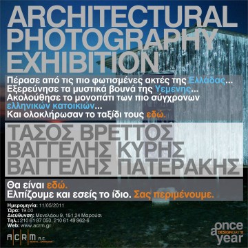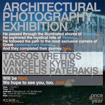 Με γνώμονα το πάθος για το design και τις εξελίξεις στο πεδίο της αρχιτεκτονικής, μελέτησε, σχεδίασε και οργανώνει για πρώτη φορά στην Ελλάδα έκθεση αρχιτεκτονικής φωτογραφίας με τίτλο: “once a year”.